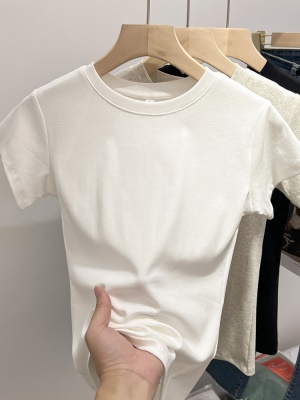 正肩短款白色短袖t恤女夏季螺纹针织莫代尔内搭打底衫上衣体恤潮
