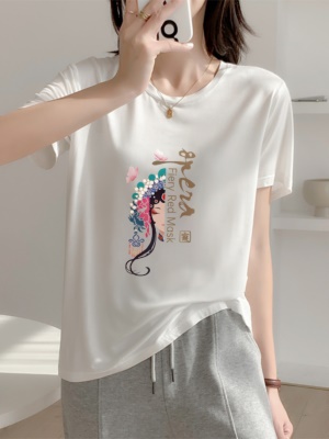 夏季冰丝短袖女t恤国潮脸谱潮牌印花体恤高级小众设计感上衣2025