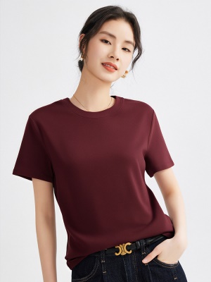 天丝莱赛尔羊毛体恤圆领正肩短袖T恤女2025新款夏季洋气时尚上衣