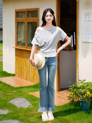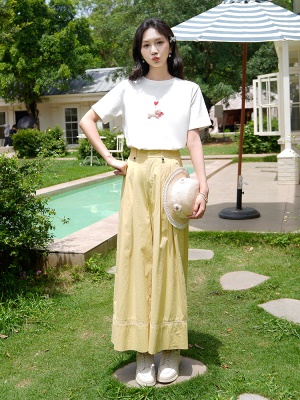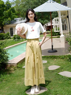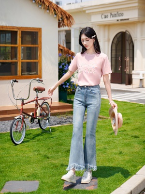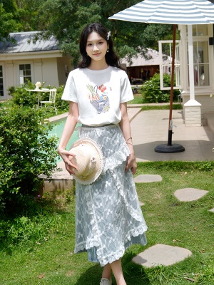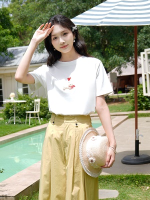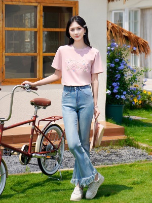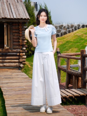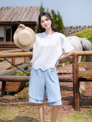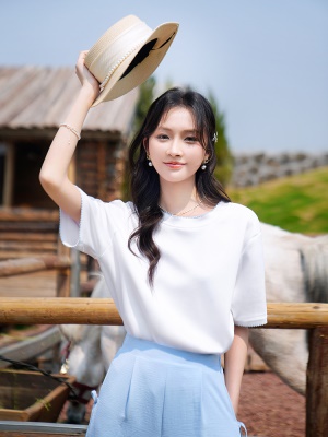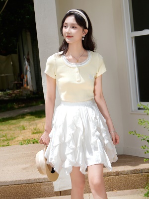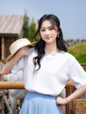 ATAR2025夏季新款甜美波浪边圆领短袖T恤 女宽松显瘦百搭半袖上衣