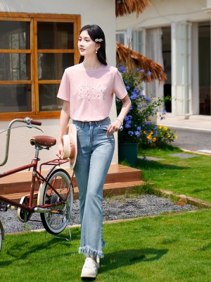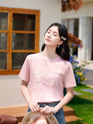 ATAR休闲夏季新品女字母刺绣短袖T恤衫2025时尚百搭减龄圆领上衣