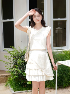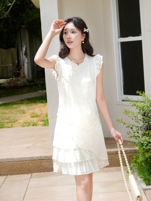 ATAR新中式夏季新款木耳边盘扣无袖T恤 2025女装冰凉提花V领上衣
