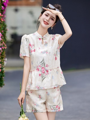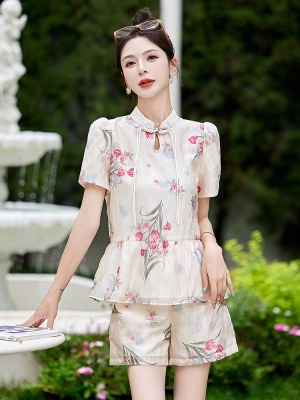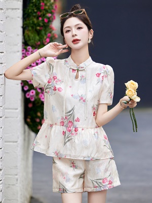 小香风短裤印花套装女2025夏季新款时尚流行爆款新中式年轻两件套