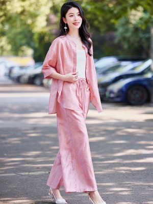新中式盘扣天丝套装女夏2025新款气质巨好看优雅亚麻阔腿裤三件套