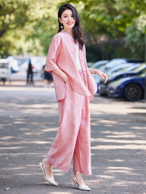 名媛高端新中式套装女2025夏装新款盘扣炸街减龄时尚西装裤两件套