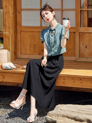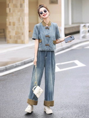 中国风方领牛仔套装女2025夏季新款休闲薄款减龄优雅女神范两件套