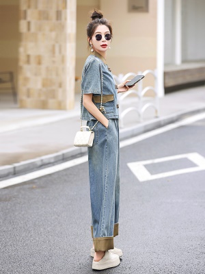 欧货干练气质短裤套装女夏2025新款流行炸街薄款水洗棉牛仔两件套