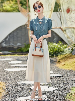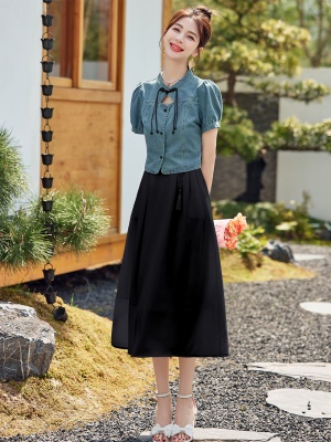 薄款冰丝牛仔套装裙女2025夏天新品新中式国风今年流行漂亮两件套