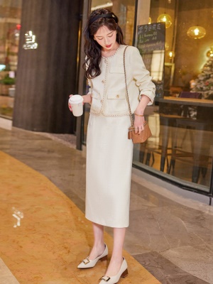爆款小香风女装套装2025春季新款盘扣轻奢高级感女人味裙子两件套