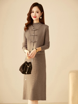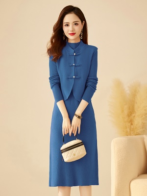 新中式小香风套装女2025春秋冬新款高档减龄气质毛衣连衣裙两件套
