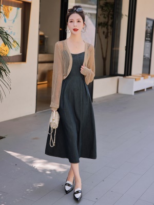初秋季吊带牛仔连衣裙开衫套装女2025新款欧货时尚气质辣妹两件套