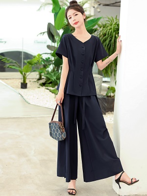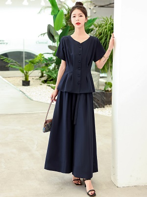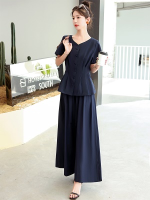 休闲时尚阔腿裤套装女夏装2025新款遮肉巨显瘦成套搭配职业两件套