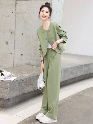 高级感西装女套装2025春秋款时尚搭配一整套阔腿裤职业穿搭两件套