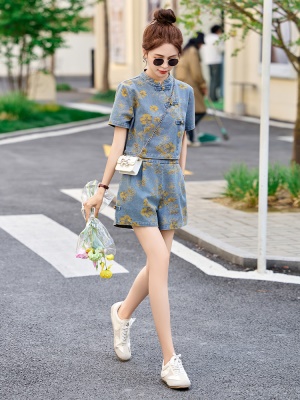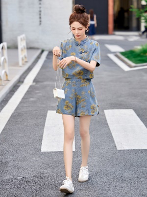 新中式盘扣印花短裤套装女2025夏季新款时尚洋气小个子国风两件套