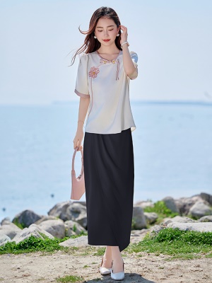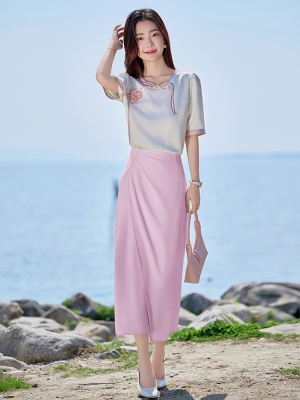 新中式设计旗袍上衣套装女2025夏季新款清冷感国风改良唐装两件套