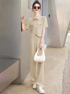 小香风西装阔腿裤套装女夏季2025新款休闲炸街时尚职业爆款两件套