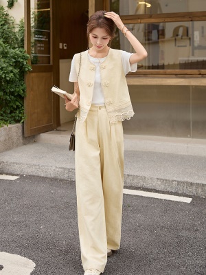 欧货休闲收腰马甲套装女2025夏季新款时尚巨好看洋气阔腿裤两件套