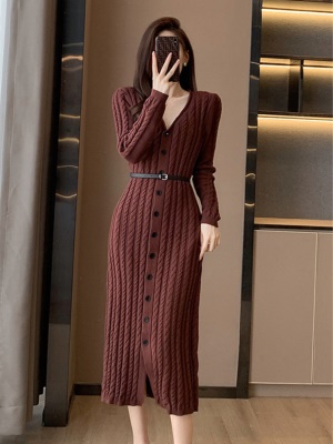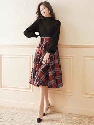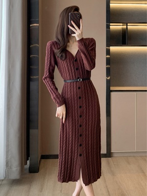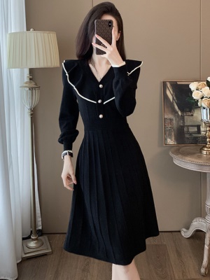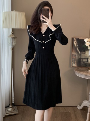 秋冬配大衣的内搭连衣裙毛衣裙小香风百褶裙收腰修身打底针织裙女