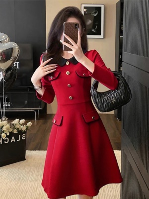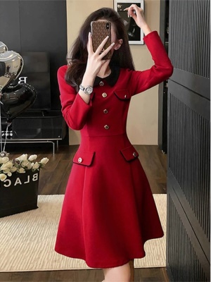 秋冬季新款小香风红色连衣裙女高级感修身显瘦气质礼服裙高端小众