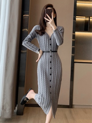 针织鱼尾连衣裙女秋冬季气质高级感小个子打底内搭配大衣的毛衣裙