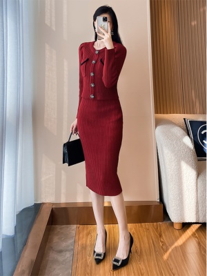 高级感小香风套装红色毛衣连衣裙女秋冬气质名媛针织半身裙两件套