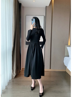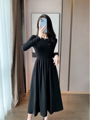 黑色针织连衣裙女2025年秋冬新款收腰显瘦气质打底裙配大衣的内搭