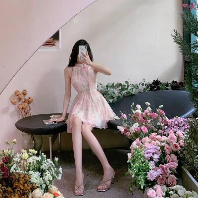 2025新款雪纺碎花连衣裙女夏季小清新收腰显瘦气质喇叭袖裙子超仙