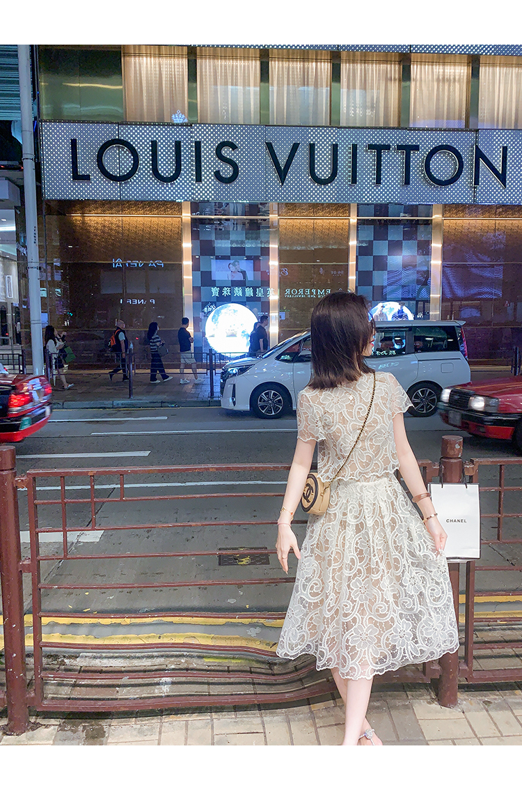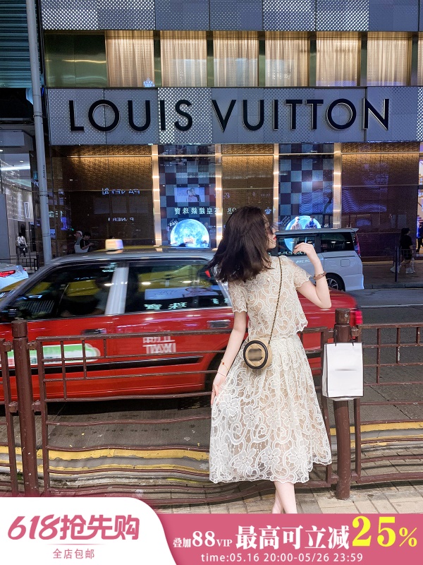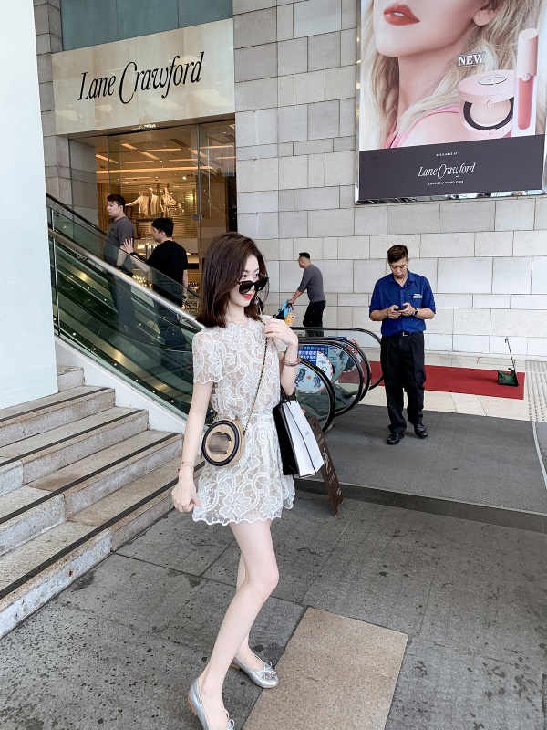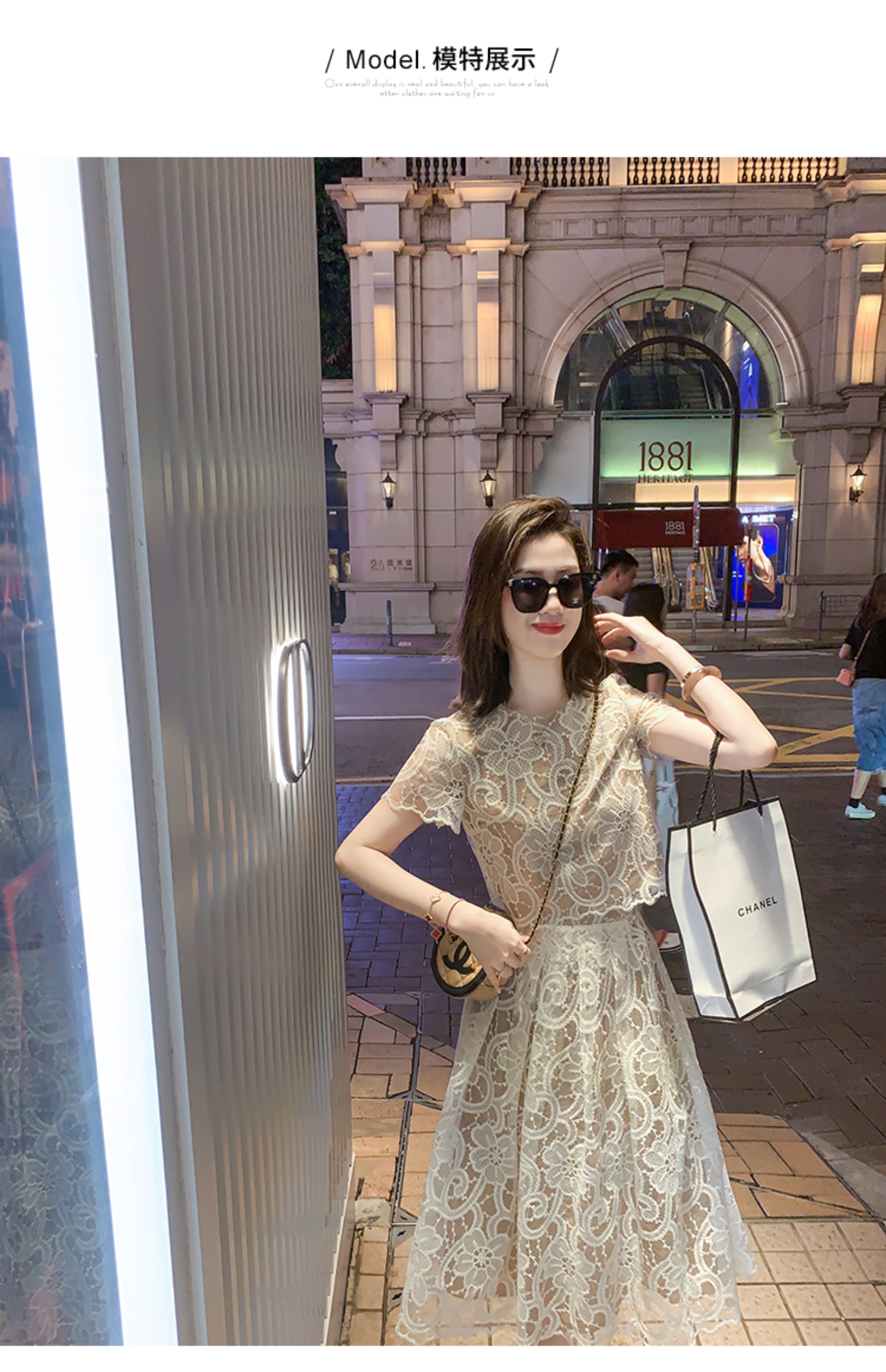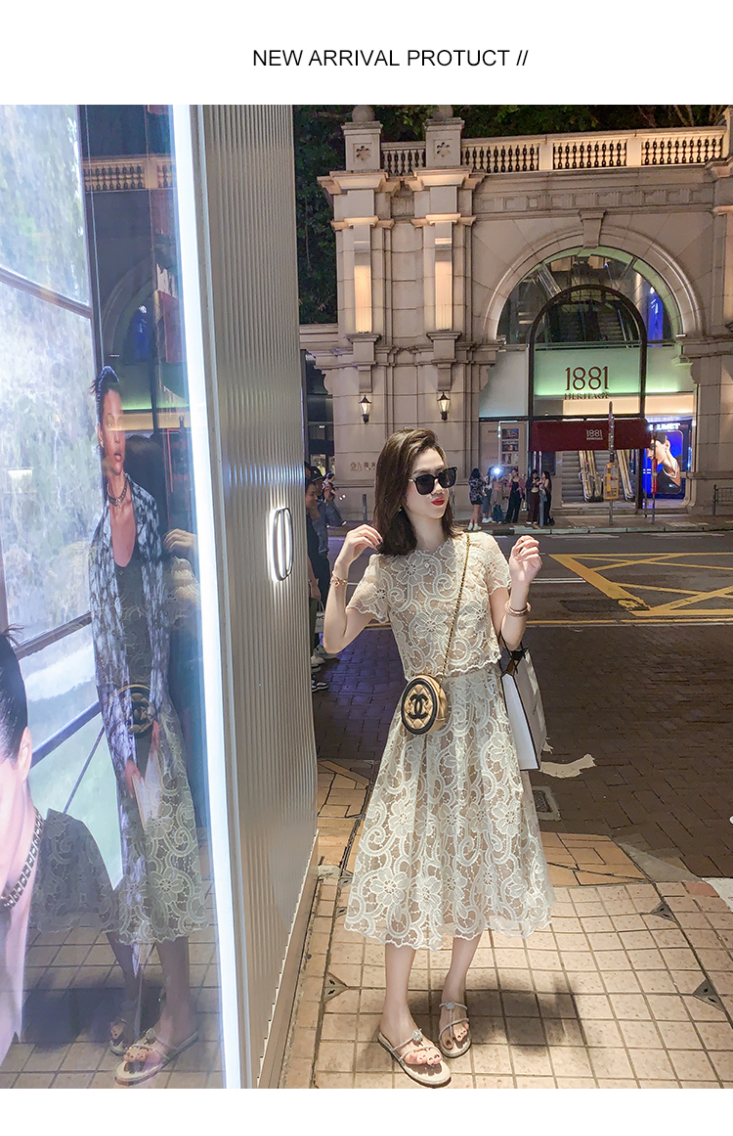[限时折扣] 设计感钩花蕾丝套装连衣裙女2025夏季新款两件套裙子