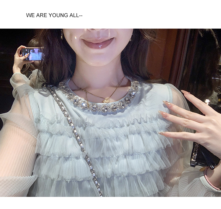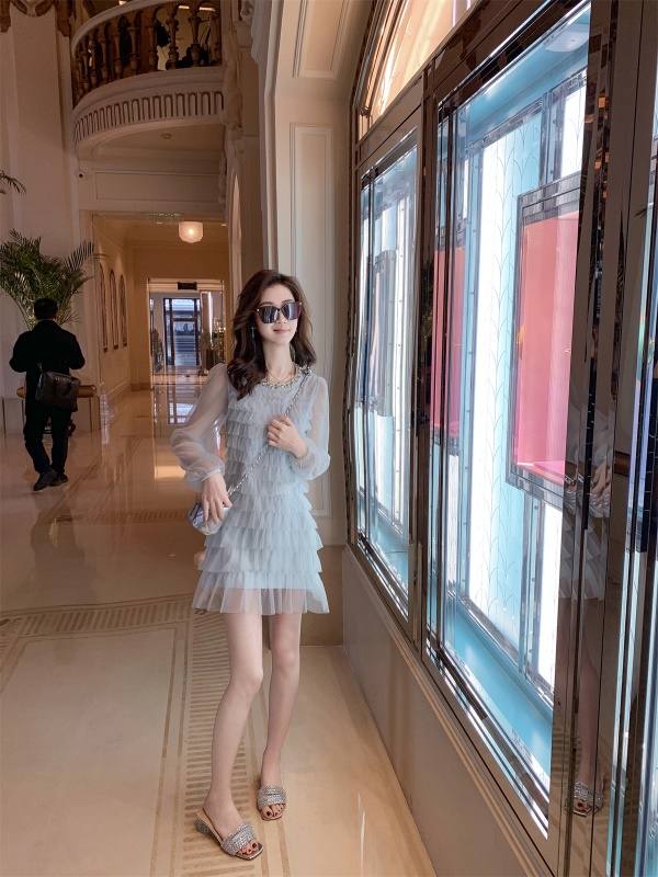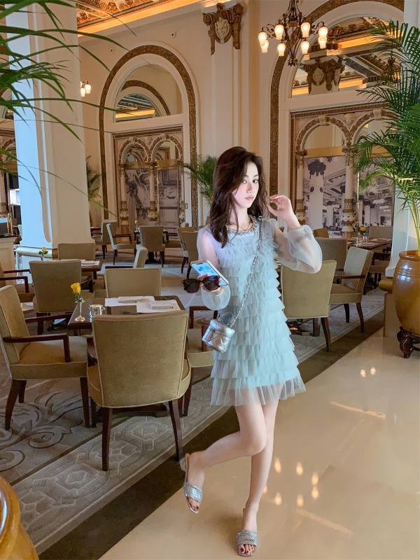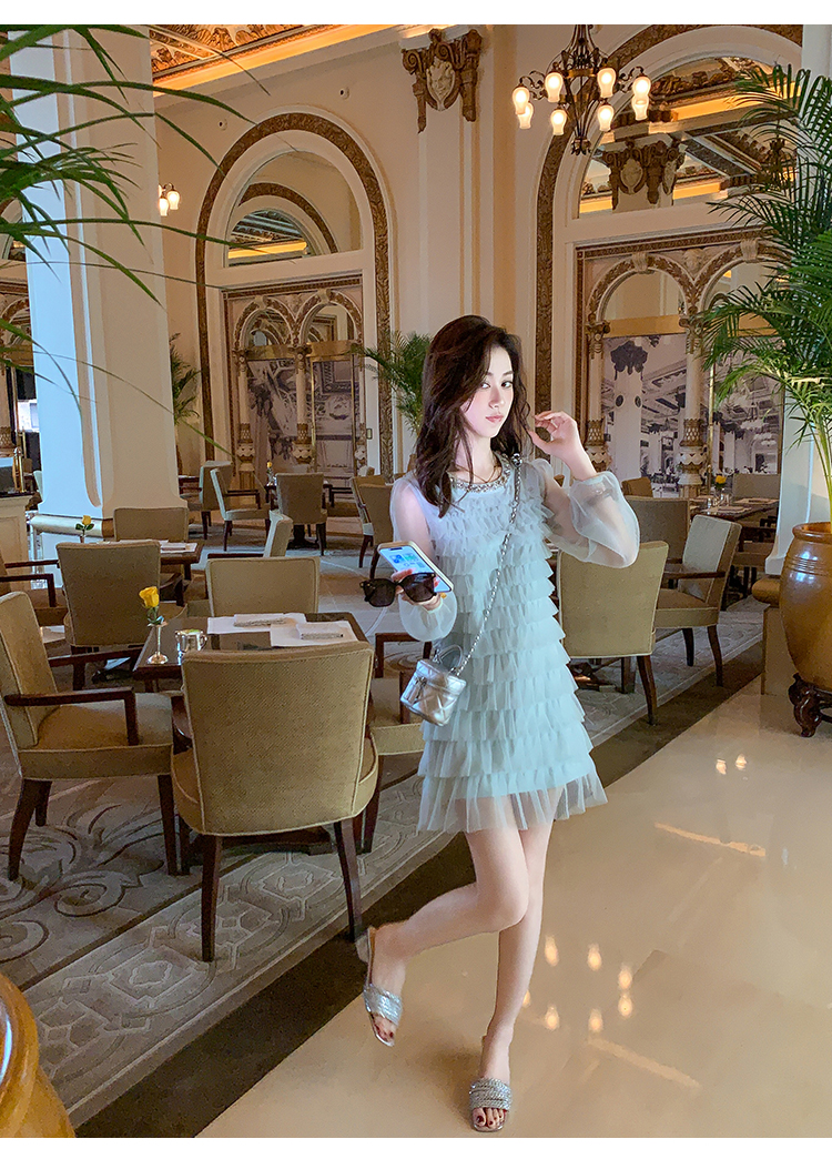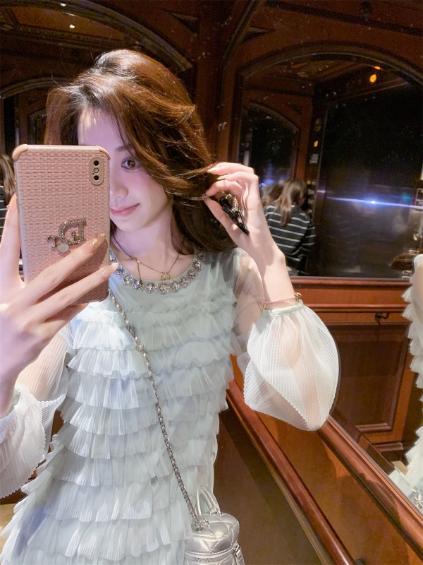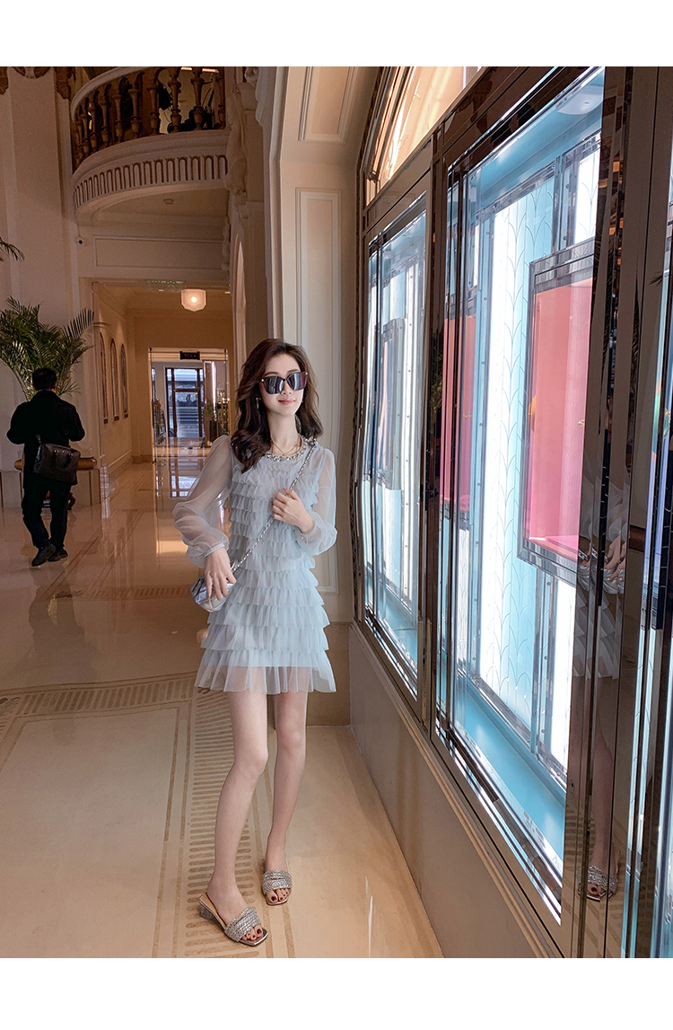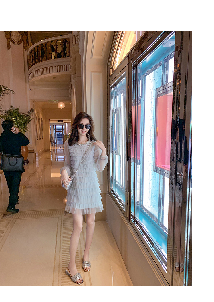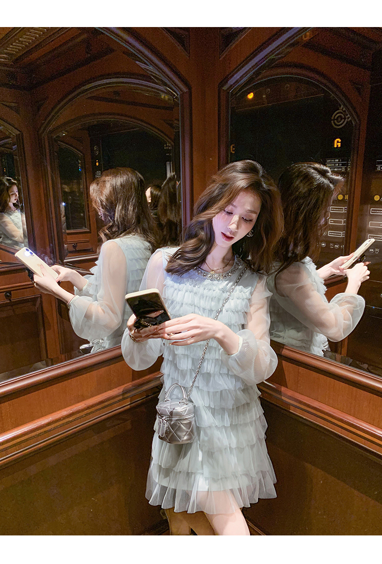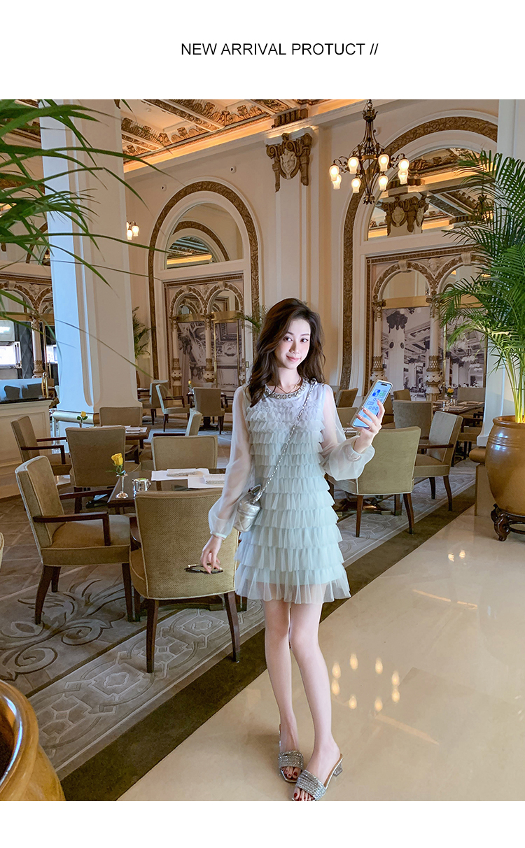 「青翠蓬蓬」钉珠纺纱蛋糕裙女新款气质薄纱连衣裙