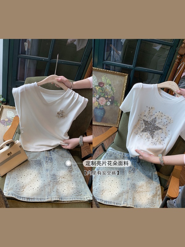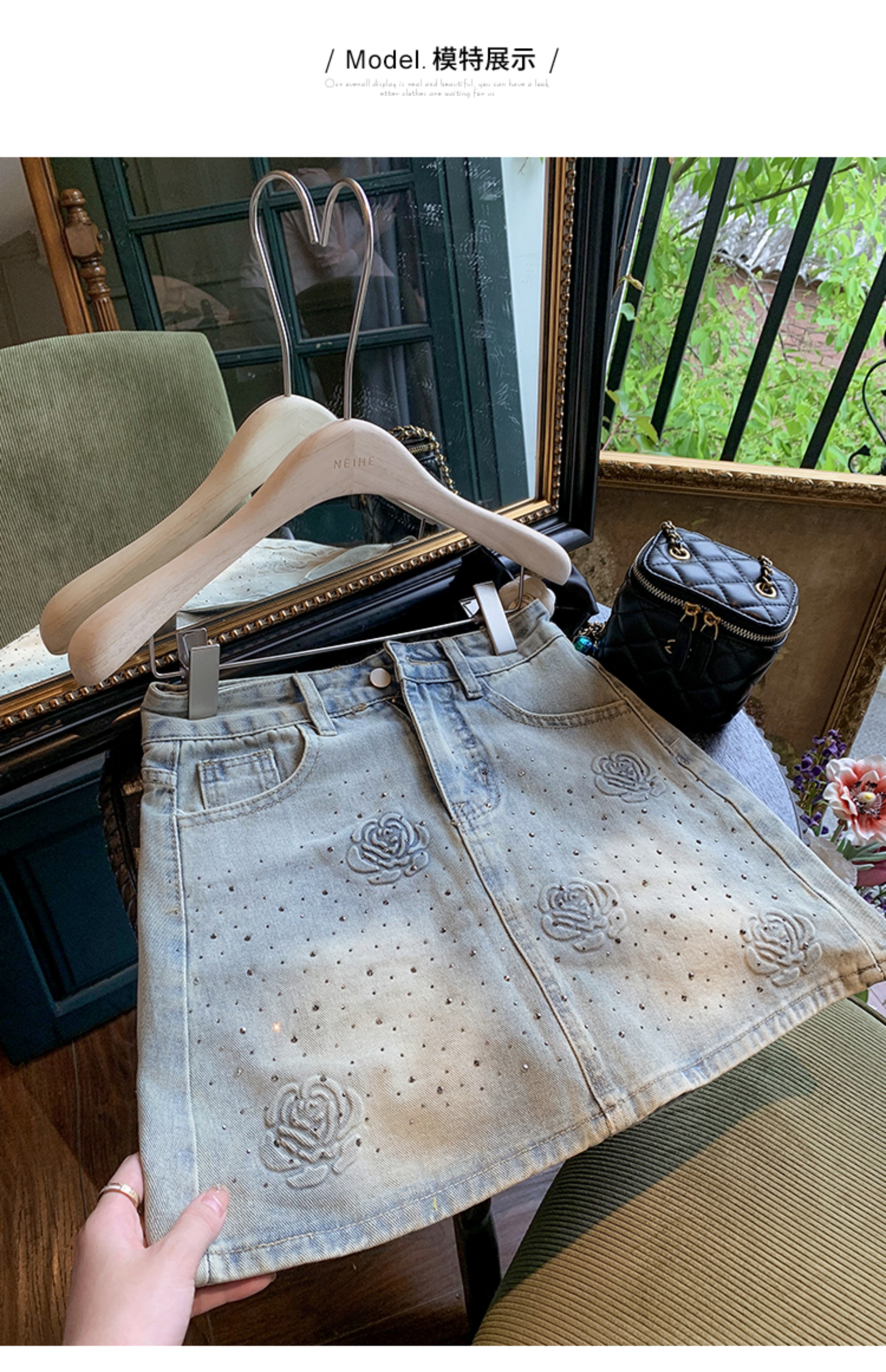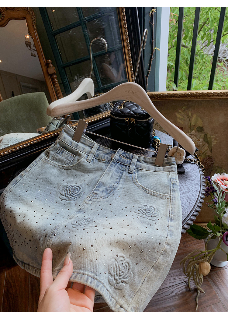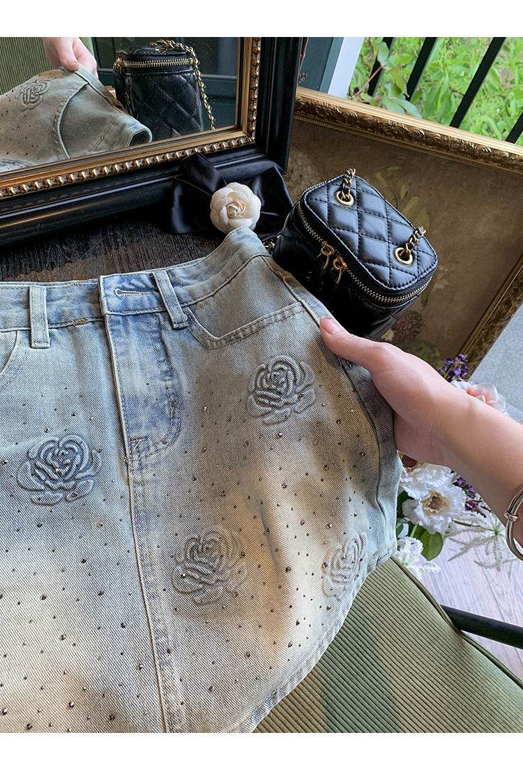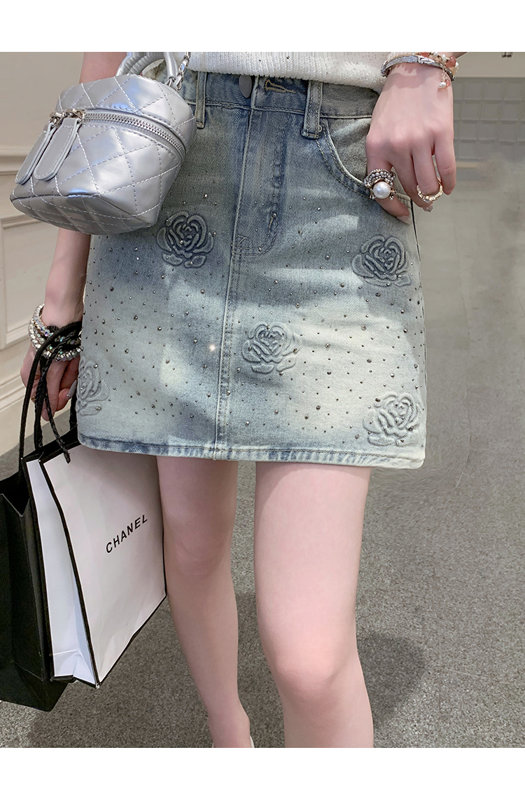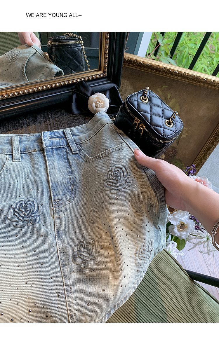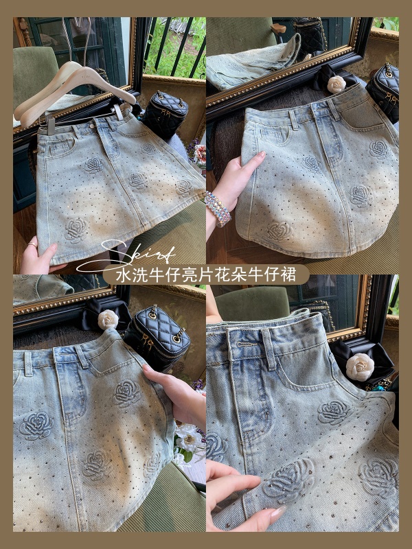 亮片花朵牛仔裙女2025新款夏季a字半身裙高腰短裙子