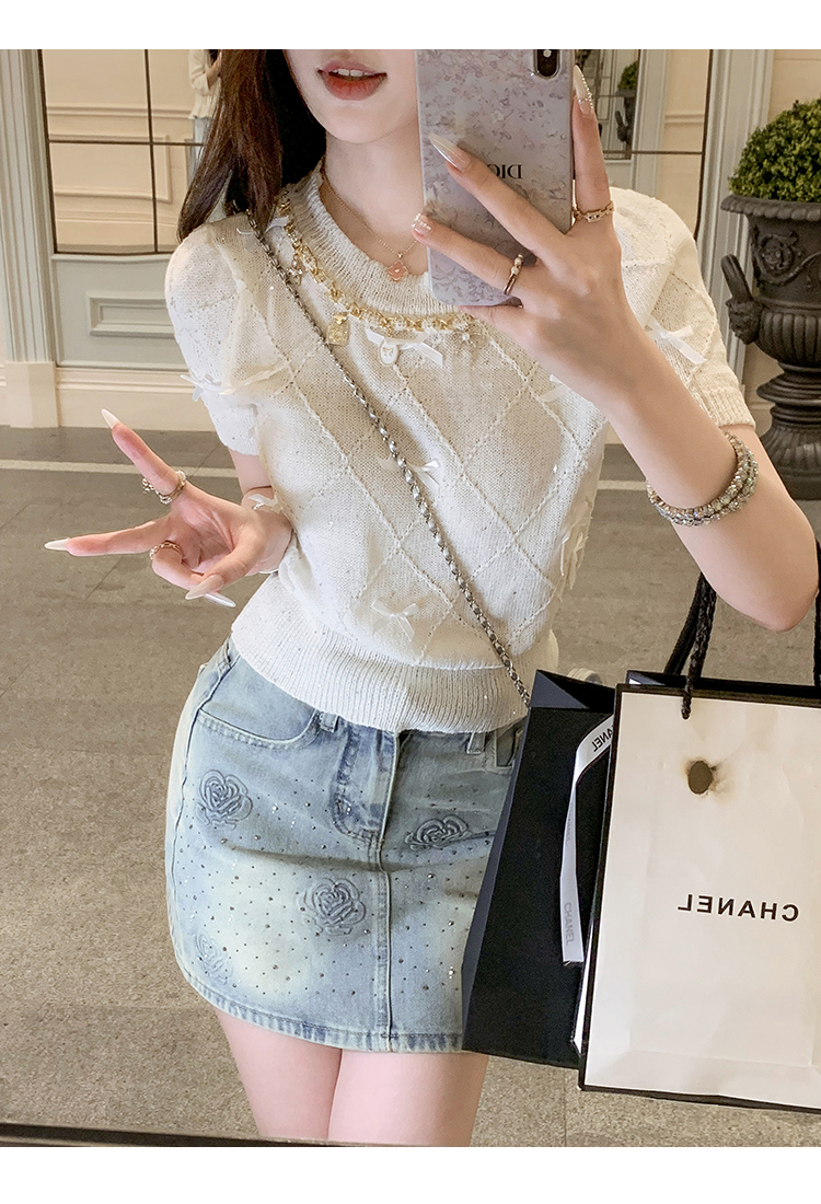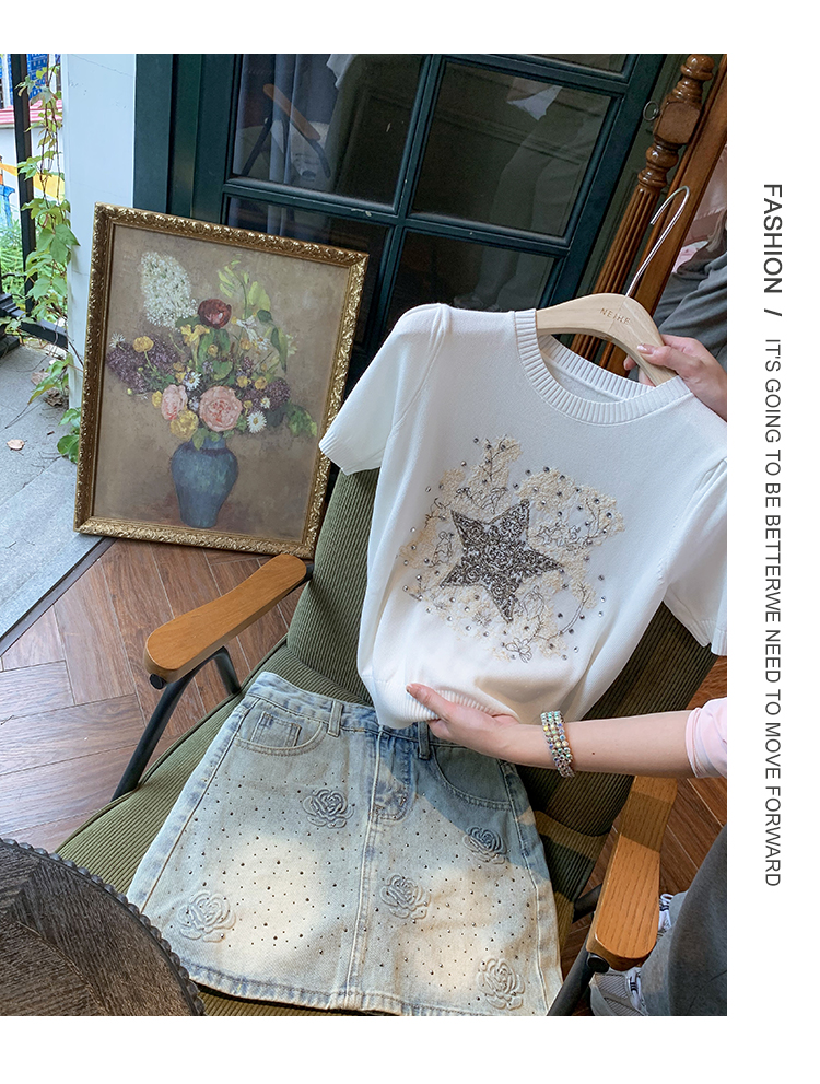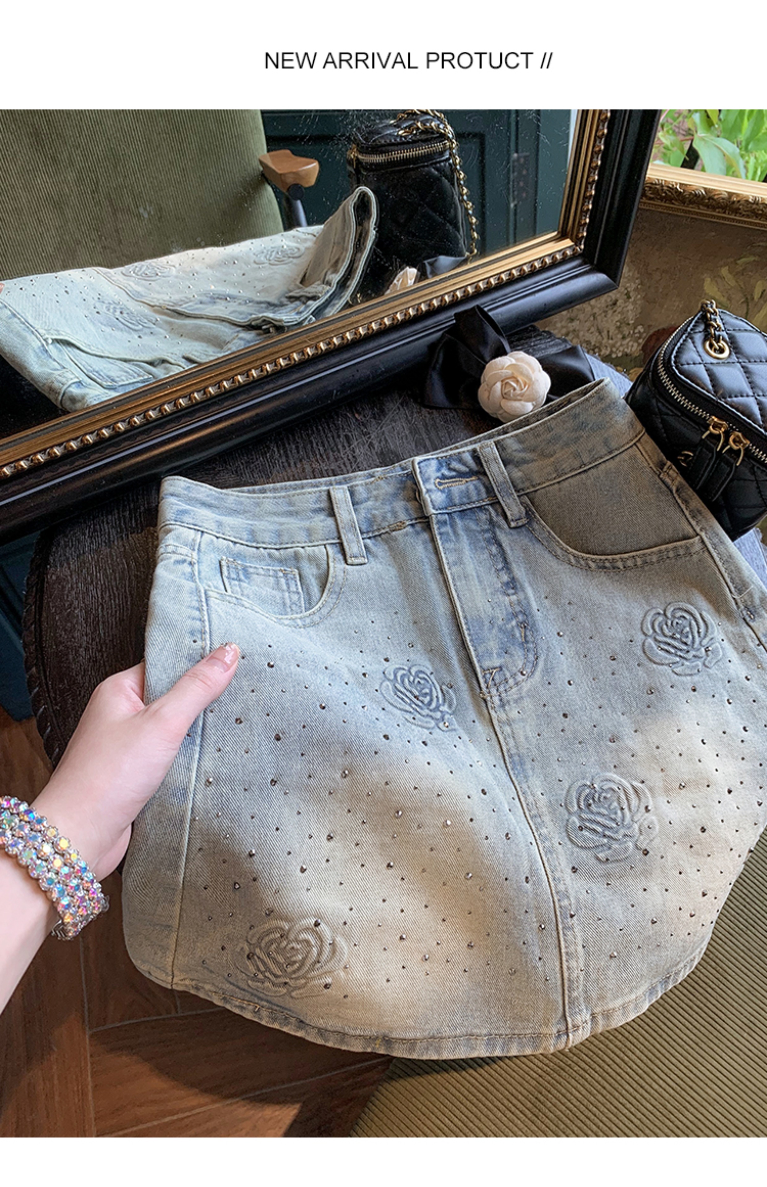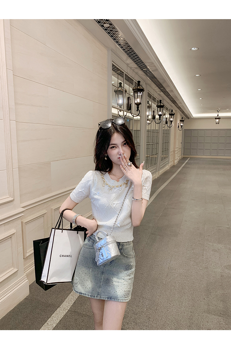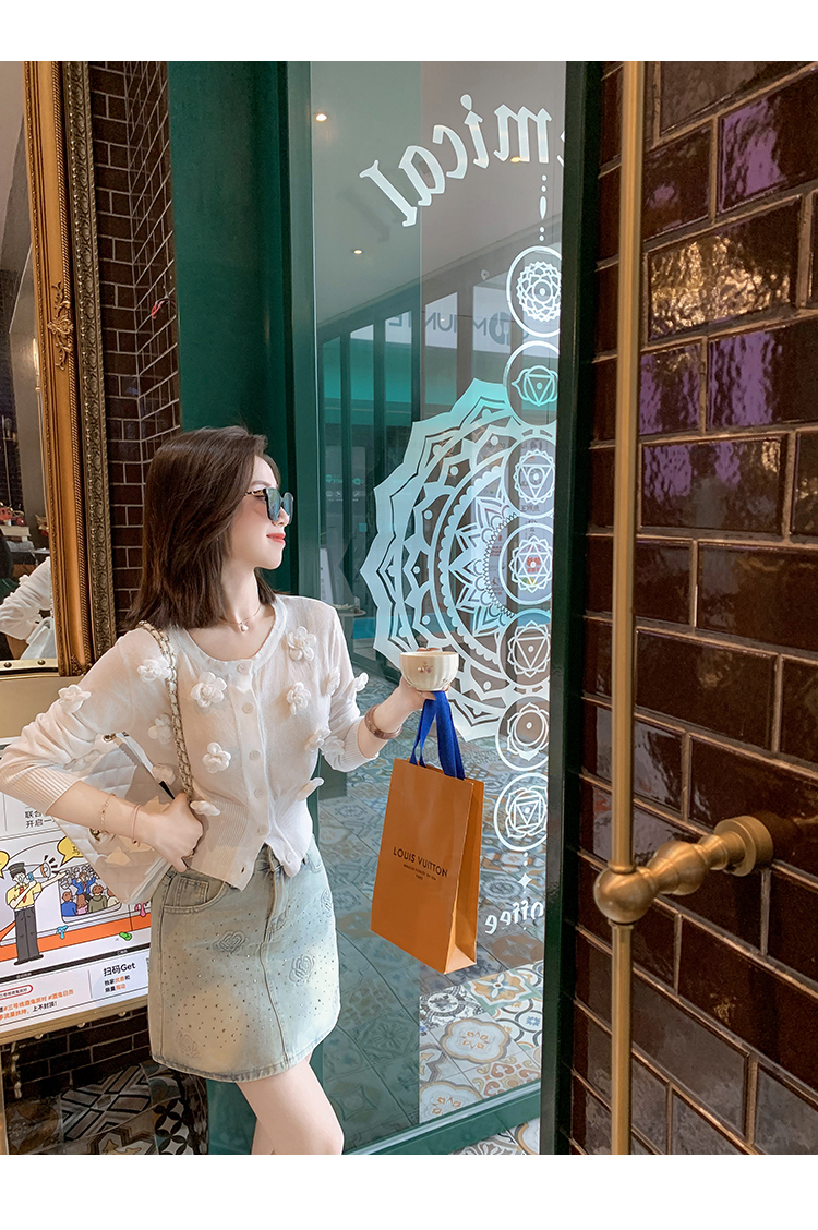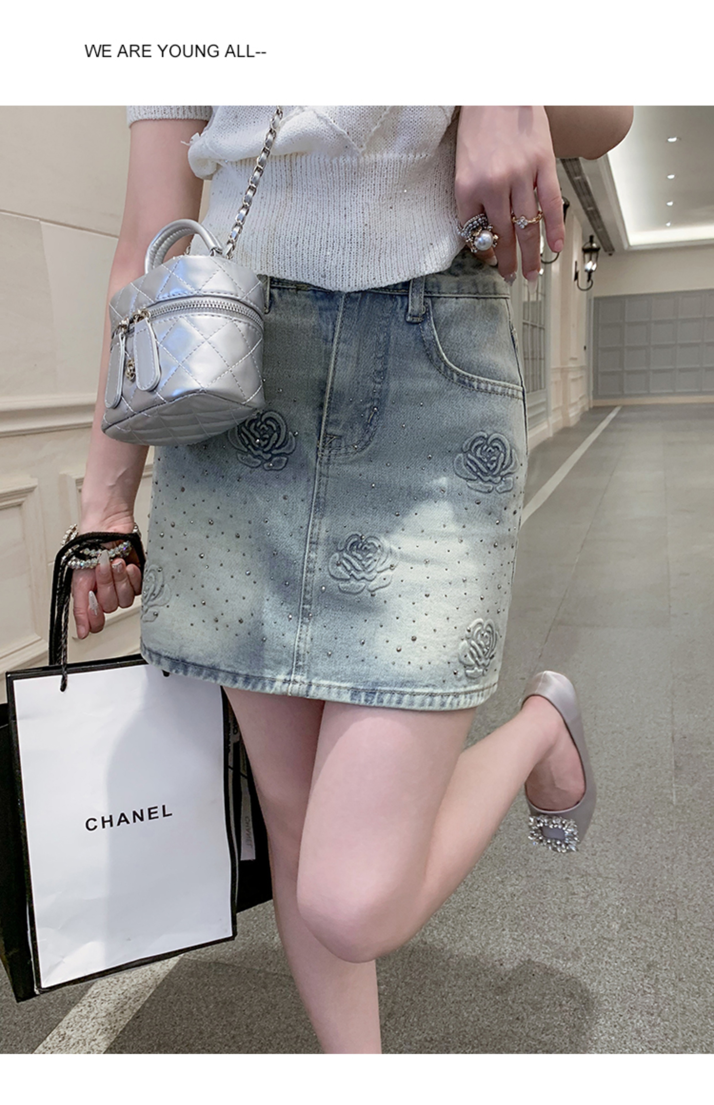 亮片花朵牛仔裙女2025新款夏季a字半身裙高腰短裙子