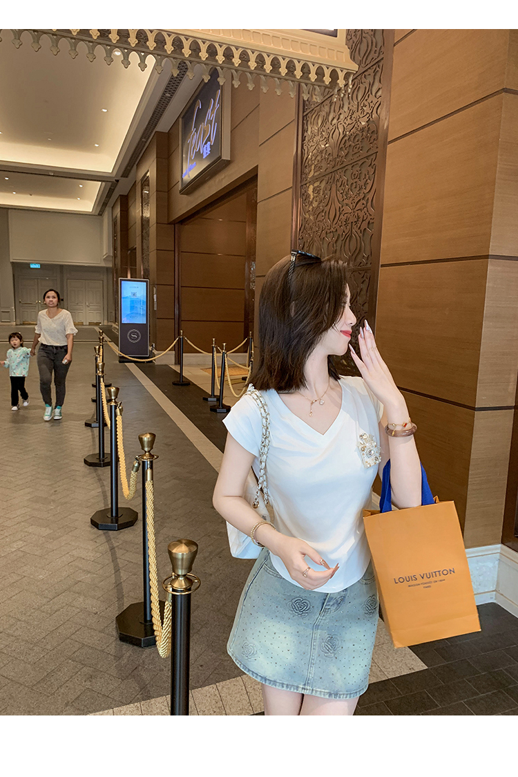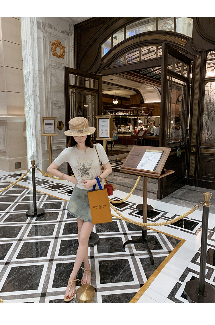 正肩女t恤方领短袖夏季新款低领锁骨设计感修身显瘦法式别致上衣