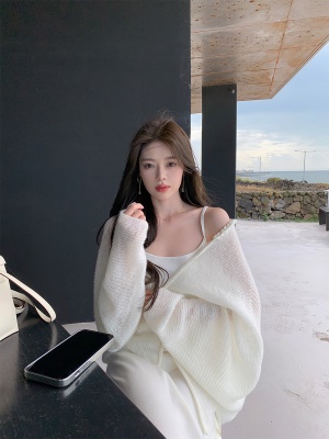 ByYou 秋冬新款温柔风气质白色针织吊带连衣裙长款收腰修身毛衣裙