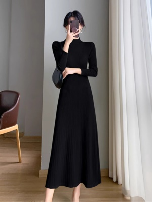 秋冬季新款配大衣长款毛衣裙气质显瘦黑色内搭打底针织连衣裙女装