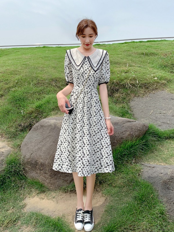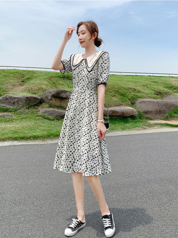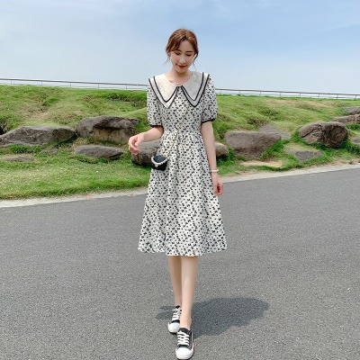 商品名称:法式小个子雪纺碎花连衣裙女夏季新款2025娃娃领气质显瘦a字裙子