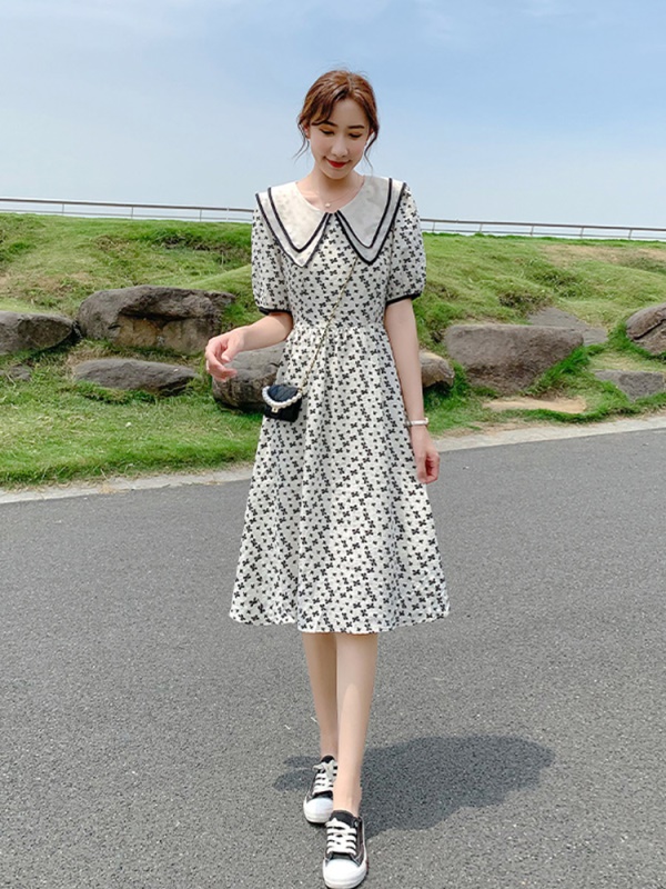 法式小个子雪纺碎花连衣裙女夏季新款2025娃娃领气质显瘦a字裙子