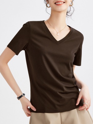 冰丝2025新款棉V领T恤女夏修身显瘦短袖上衣ins潮薄款透气打底衫