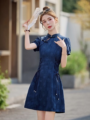 新中式提花收腰连衣裙女2025夏季新款国风气质修身改良旗袍A字裙
