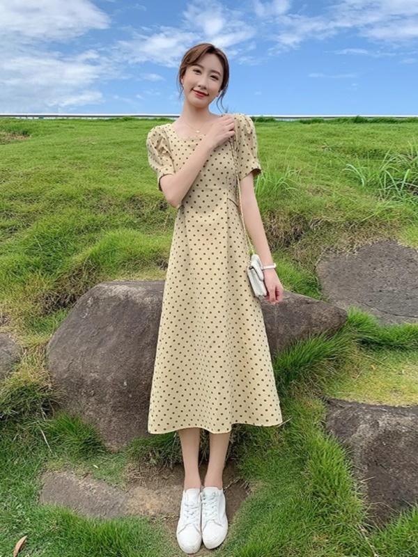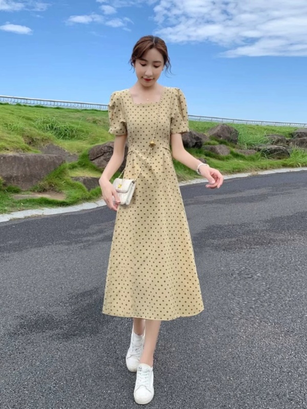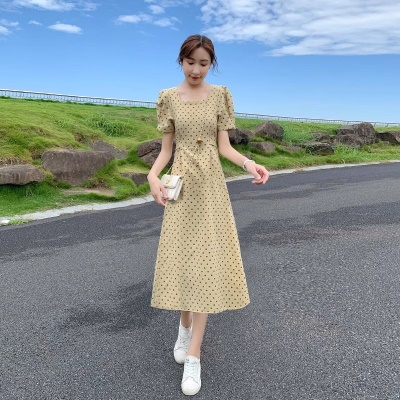 商品名称:高级感赫本风波点雪纺连衣裙子女2025新款方领显瘦气质a字裙夏季