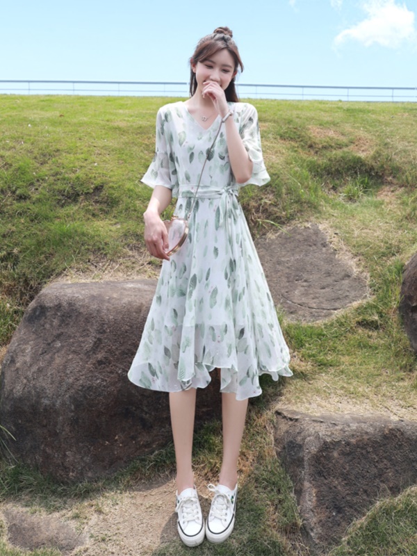 小个子碎花雪纺连衣裙女夏季2025新款小清新遮肚显瘦气质仙女裙子