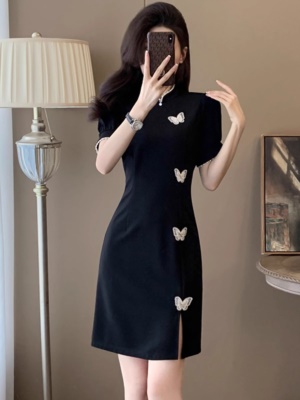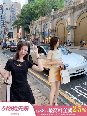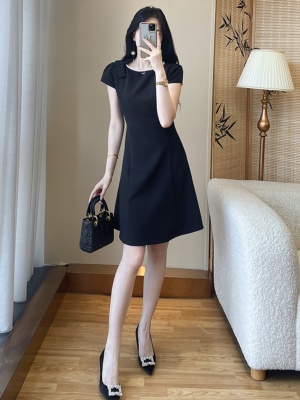 职场轻熟风气质法式高级感礼服修身显瘦黑色连衣裙女夏赫本小黑裙