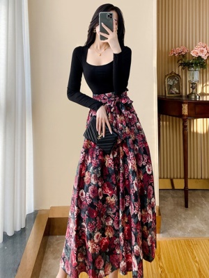 ByYou 夏季新款碎花雪纺连衣裙女设计感荷叶边收腰打揽不规则短裙