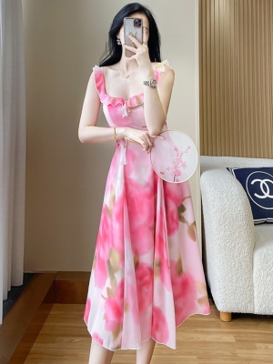 三亚海边度假沙滩吊带连衣裙女夏2025夏季新款法式雪纺收腰长裙子