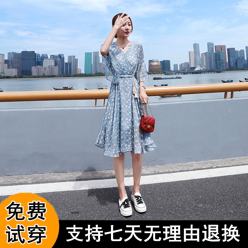 高级感碎花雪纺连衣裙女夏2025新款遮肚收腰显瘦气质v领仙女裙子