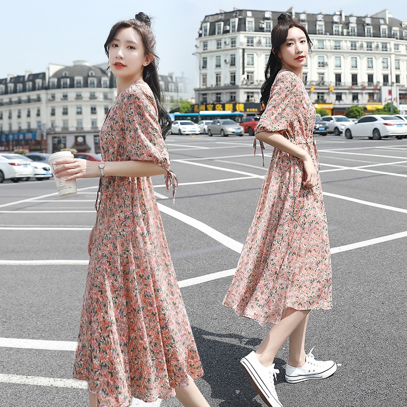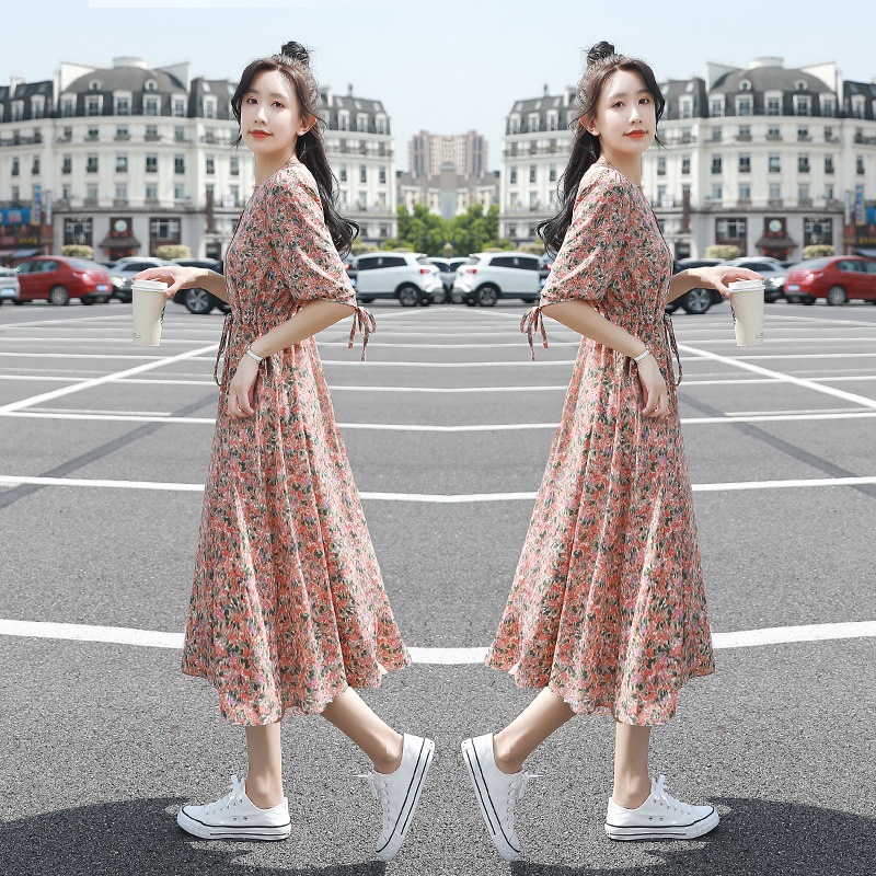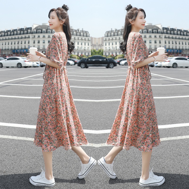 a字型小碎花雪纺连衣裙女夏季2025年新款收腰显瘦气质小清新裙子