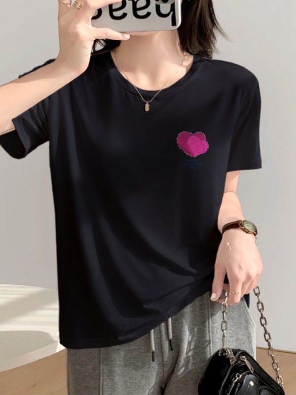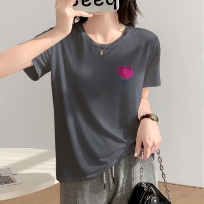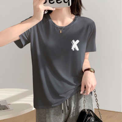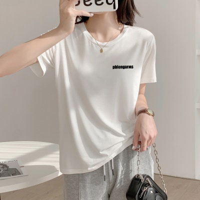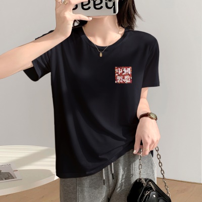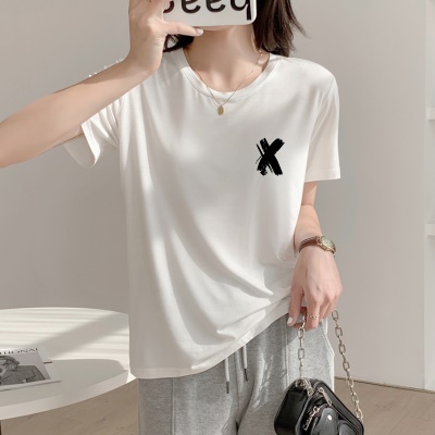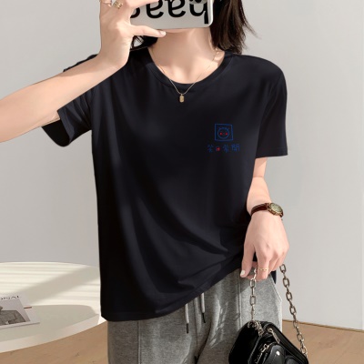 商品名称:夏季天丝上衣设计感小众女新款显瘦遮肉2025新款宽松正肩短袖t恤