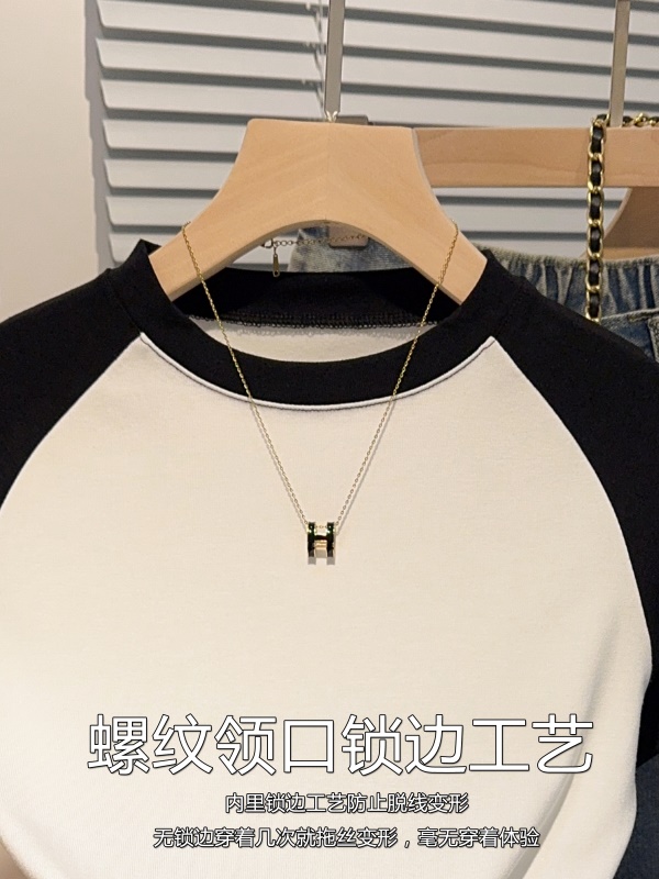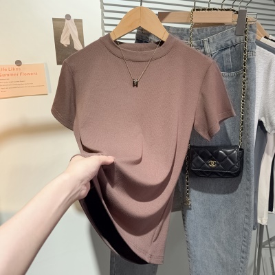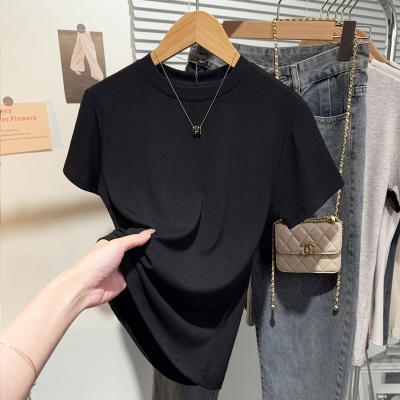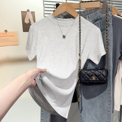 重磅小圆领修身短袖女t恤夏2025年新款插肩减龄螺纹显瘦正肩体恤