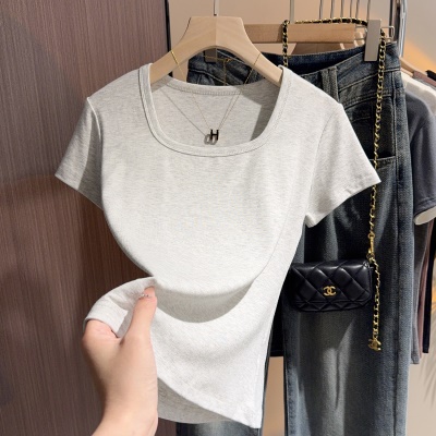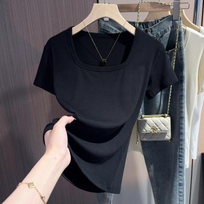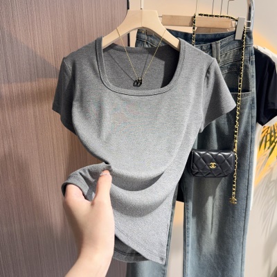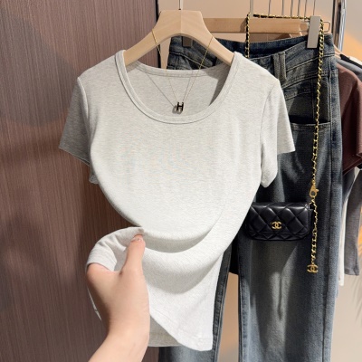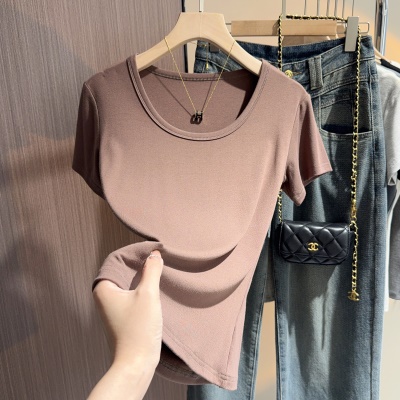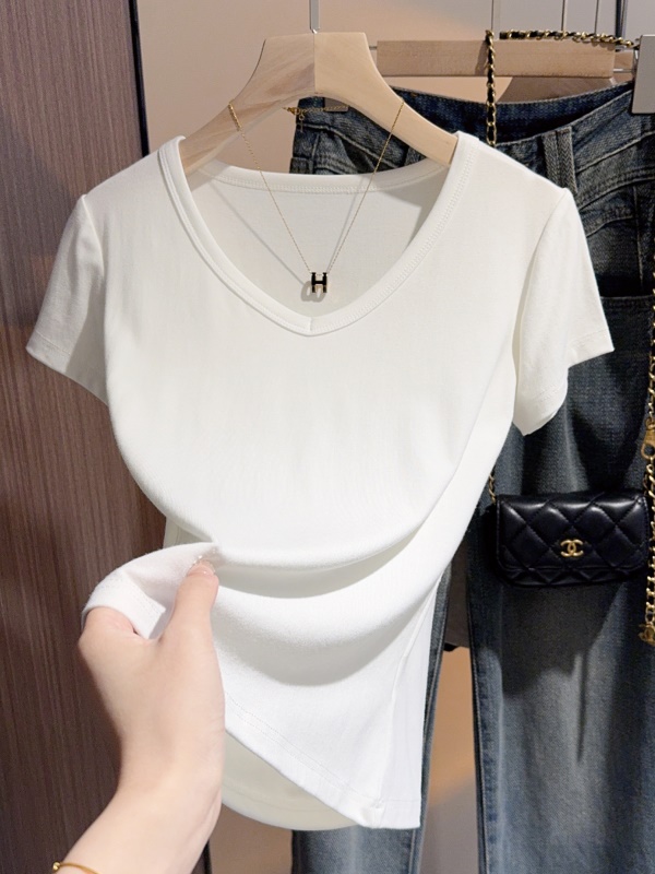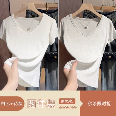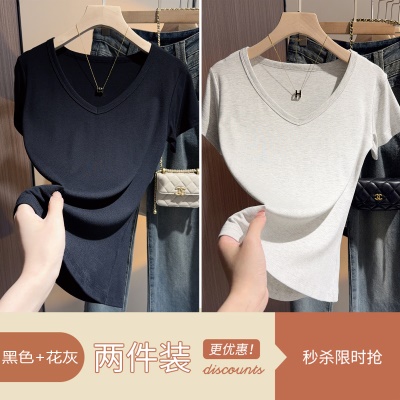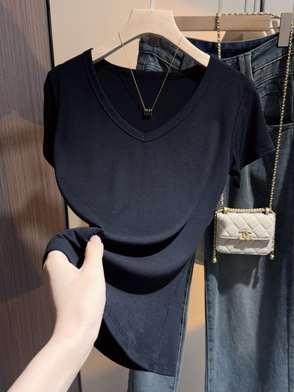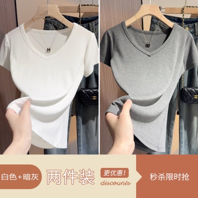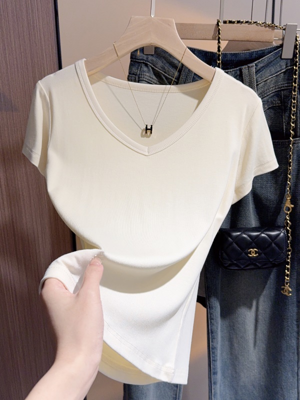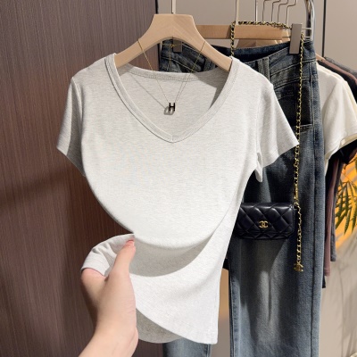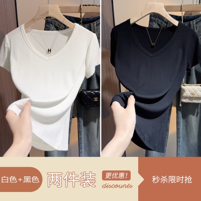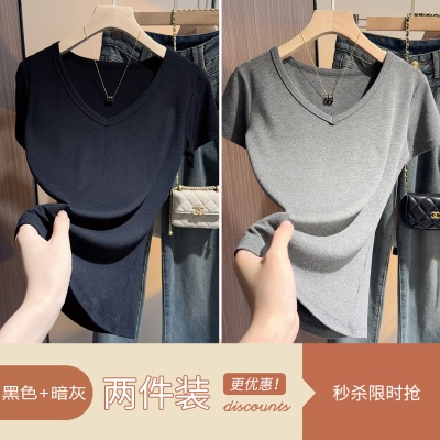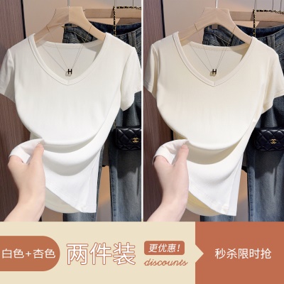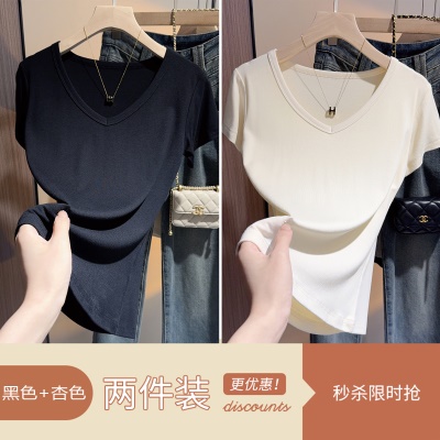 螺纹短袖面膜t恤女轻奢2025夏季新款高级感半袖冰丝V领别致上衣潮