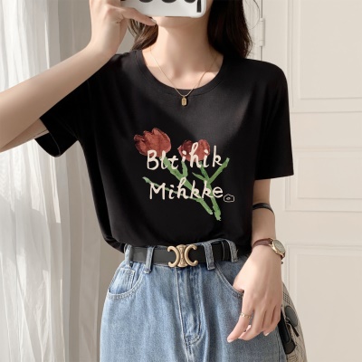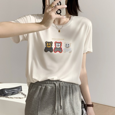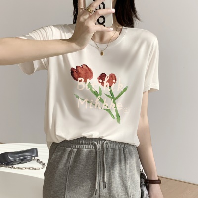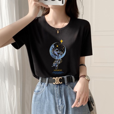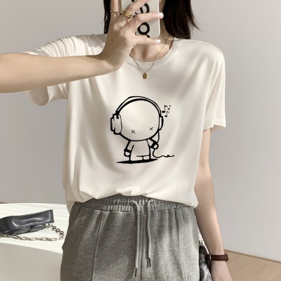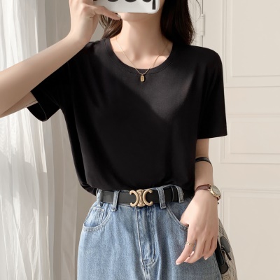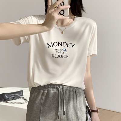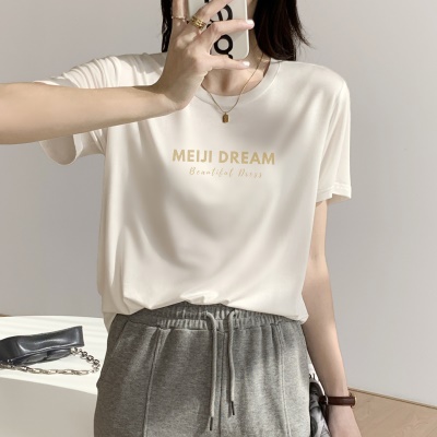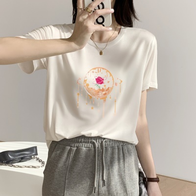 天丝短袖t恤女夏季大版气质潮牌冰丝体恤独特别致新款上衣设计感