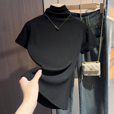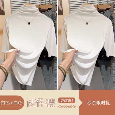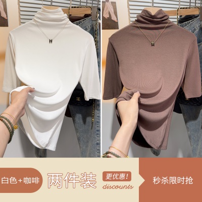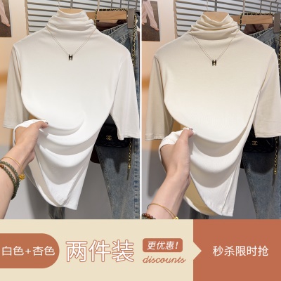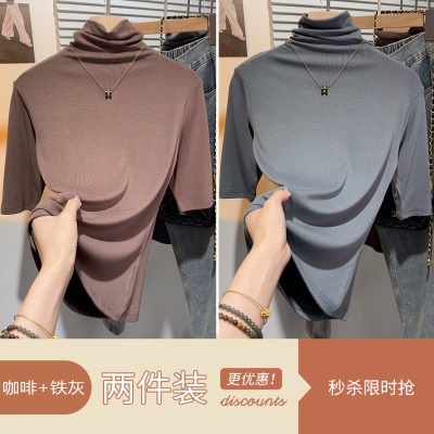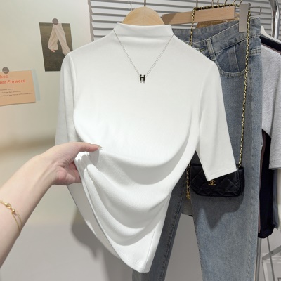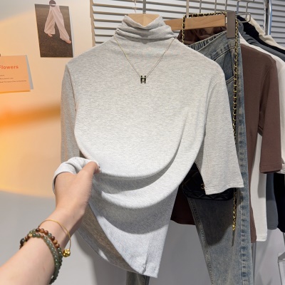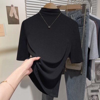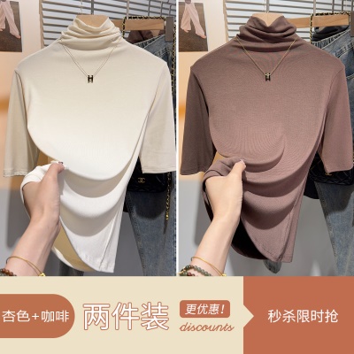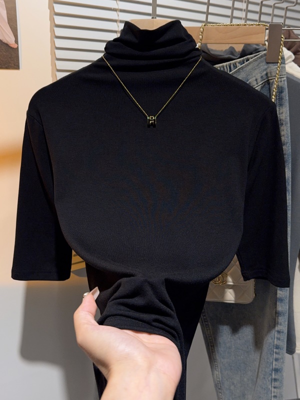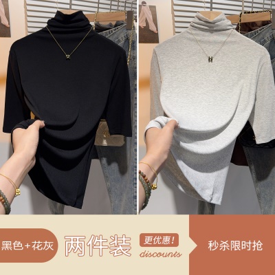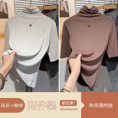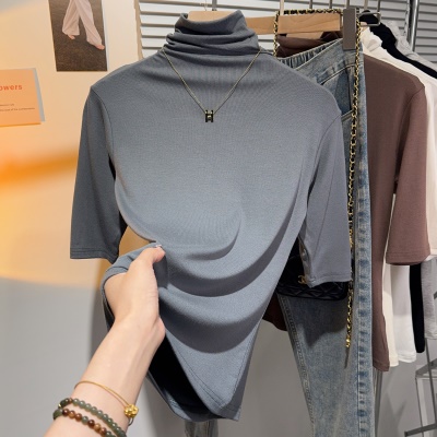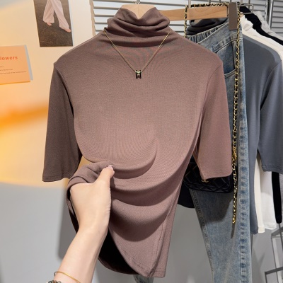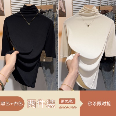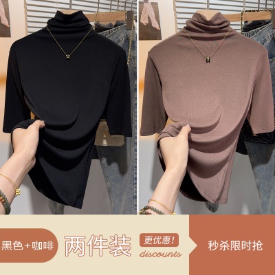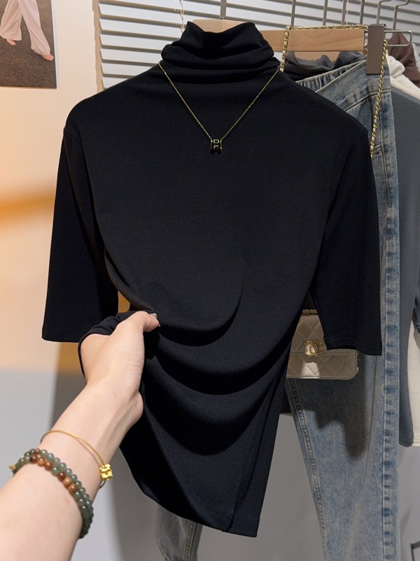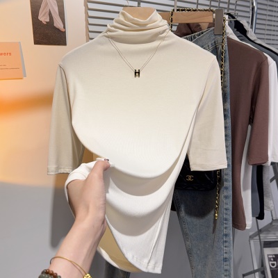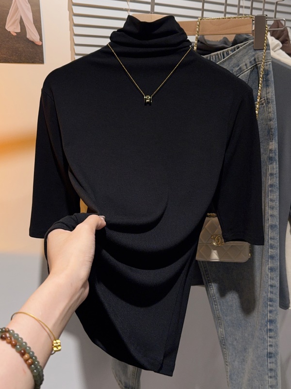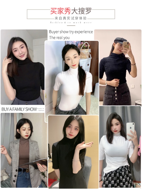 商品名称:五分袖黑色高领春秋高领打底衫女内搭可外穿修身显瘦t恤气质上衣